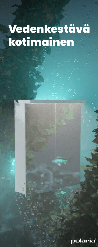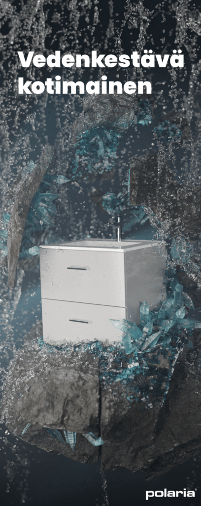 Messuille tehty animaatio toimii hyvänä sisäänheittäjänä. Tyylikäs animaatio nappaa asiakkaan huomion ja kääntää katseita! Polarialle luotu messuanimaatio kuvastaa kylpyhuonekalusteiden vedenkestävyyttä ja laatua.